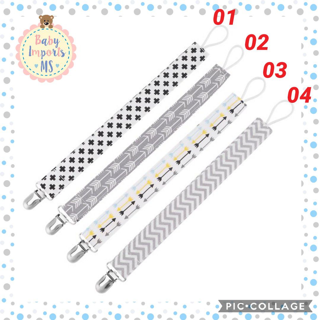 Prendedores de chupetas em tecidos.